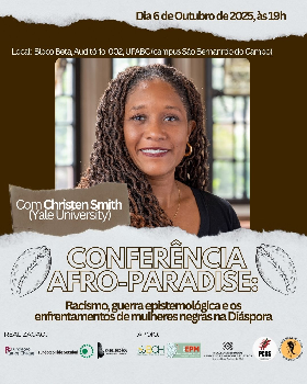 A Profª Smith apresentará reflexões a partir de sua obra Afro-Paradise, trazendo análises produzidas durante o período em que viveu no Brasil. O debate ampliará a compreensão do racismo no Brasil e nas Américas, destacando a guerra epistemológica contra o pensamento negro e os enfrentamentos protagonizados por mulheres negras na diáspora.